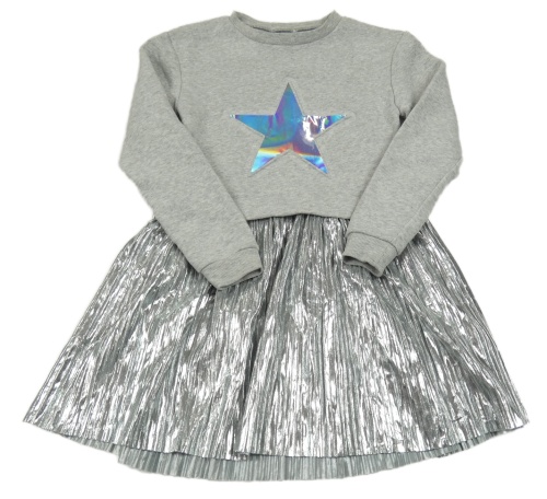 Sivo-strieborné teplákovo/plisované šaty s hviezdou
