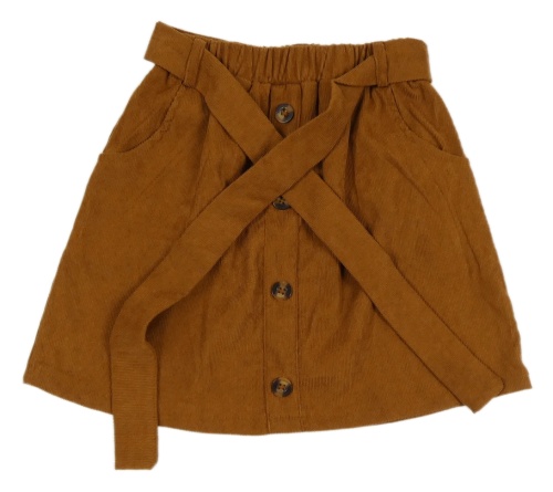 Hnedá rebrovaná sukňa s gombíkmi a opaskom Shein