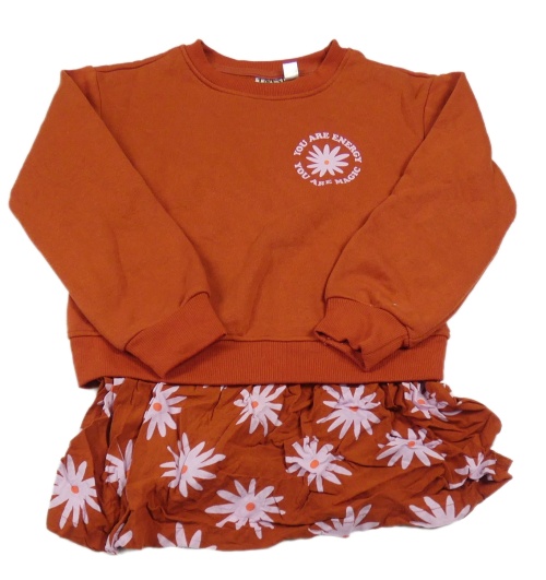 Hrdzavá teplákovo/lehká šatová tunika s kvetmi L&D