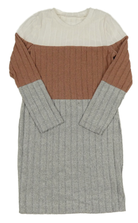 Bielo-starorůžovo-sivé rebrované úpletové šaty