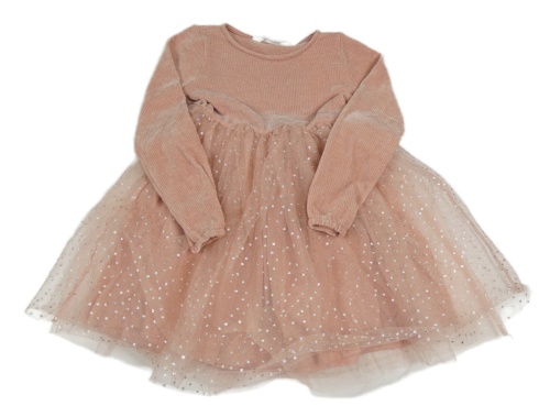 Světleskořicovo/růžové žinylkovo/tylové šaty s bodkami H&M