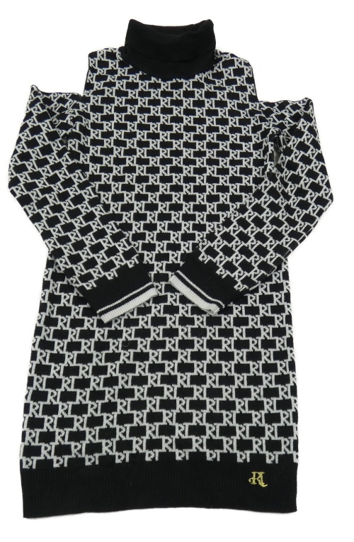 Čierno-biele vzorované pletené šaty s rolákom River Island