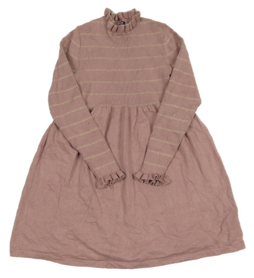 Pudrově fialové rebrované pletené šaty so zlatými pruhmi kiabi