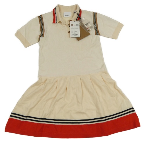 Nové - Smetanovo-červené svetrové vlnené šaty s golierikom a pruhmi BurBerry