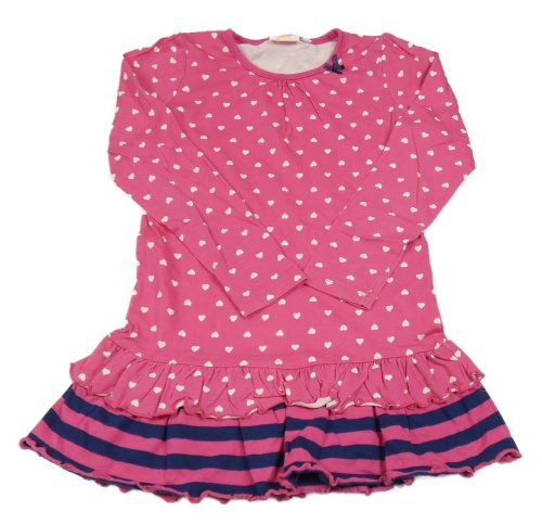Ružové vzorované bavlnené šaty so srdiečkami a volánikmi kids