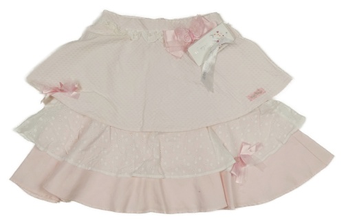 Nové - Bielo-svetloružová vrstvená sukňa s madeirou a mašľami