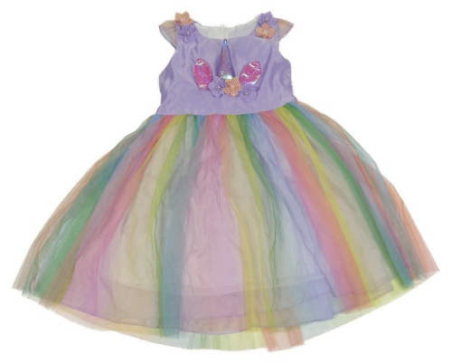 Lila-farebné šaty s 3D kvety a rohem a tylovou sukní - jednorožec
