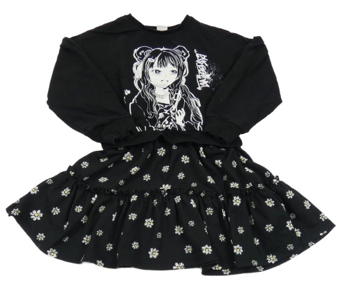 Čierne teplákové šaty s dívkou a lehkou květovanou sukní