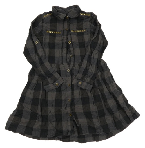 Tmavošedo-čierne kockované flanelové prepínaci košeľové šaty s cvokmi John Lewis