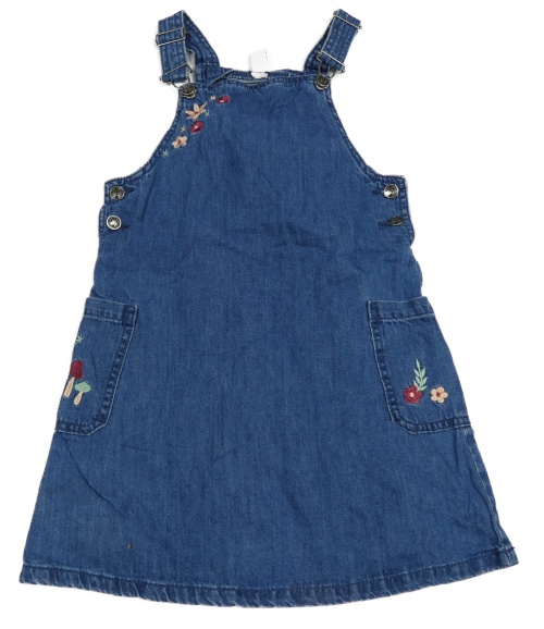 Modré na traké rifľové šaty s výšivkami květů Topolino