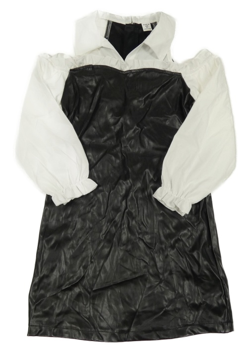 Čierne koženkové šaty s košeľovymi rukávy a golierikom shein