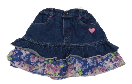 Tmavomodrá riflovo/plátěná sukňa so srdiečkom a růžemi a volánikmi Kids