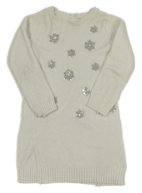 Biele žinylkové svetrové šaty s vločkami z flitrů PRIMARK