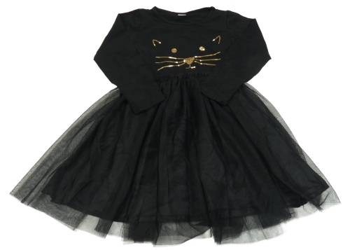 Čierne bavlněno/tylové šaty s kočkou z flitrů