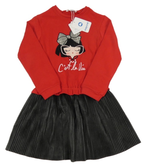 Nové - Červeno-čierne teplákovo/koženkové šaty s dívkou Mayoral