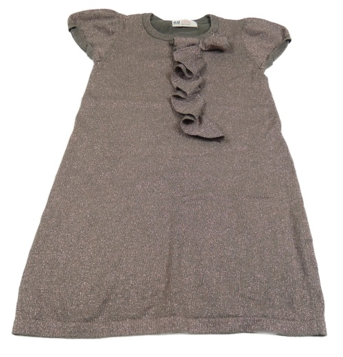 Sivo-staroružové melírované trblietavé svetrové šaty s volánikom a mašlou H&M