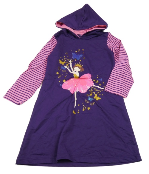 Fialovo-ružové šaty s baletkou a kapucňou