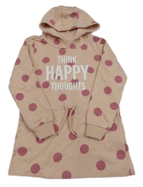 Pudrová bodkovaná á tepláková šatová tunika s nápismi a kapucňou dopodopo
