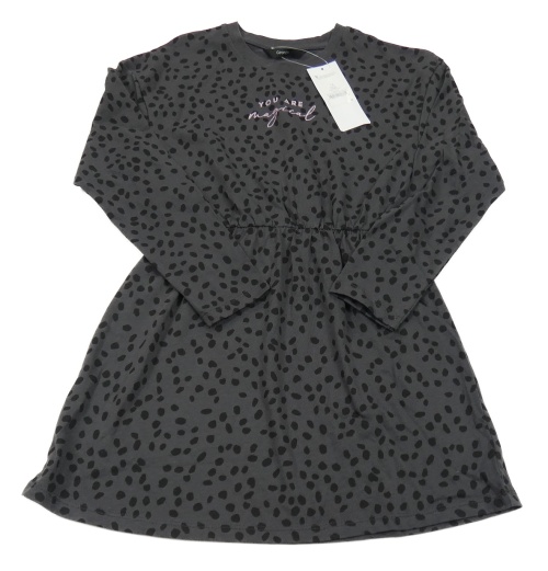 Nové - Antracitovo-čierne bodkovaná é šaty s nápisom George