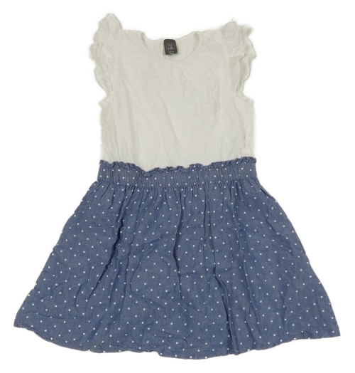 Bielo-modré melírované bavlněno/riflové šaty s vreckom a bodkami a volánikmi little kids