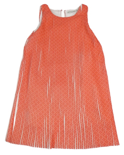 Lososovo-jahodovo-biele vzorované rebrované šaty LOSAN