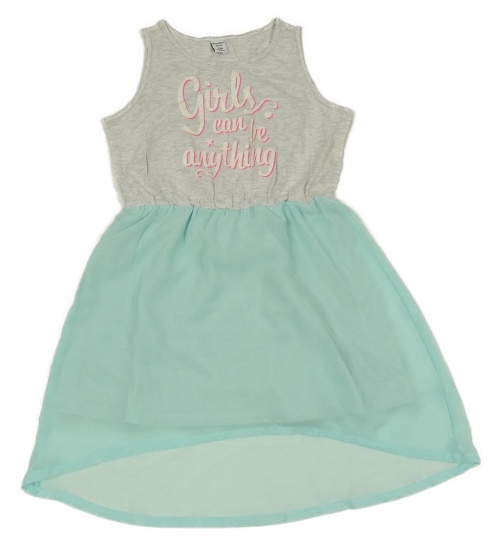 Svetlošedá -mátové bavlněno/šifonové šaty s nápismi dopodopo