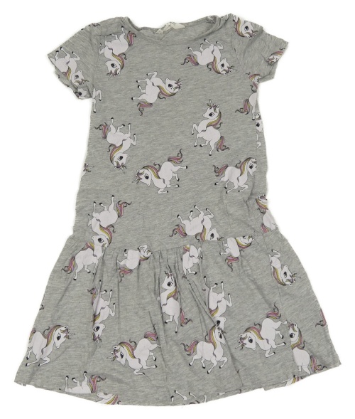 Sivé melírované bavlnené šaty s jednorožcami H&M