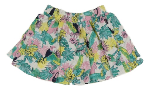 Bielo-zeleno-ružovo-žltá sukňa s listami a tukanmi Kids
