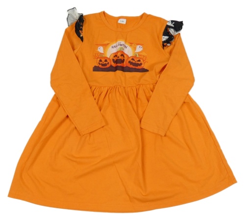 Oranžové bavlnené šaty s dýněmi a volánikmi