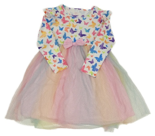Bielo-farebné šaty s motýlikmi a tylovou sukní