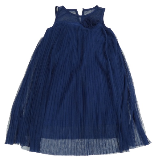 Tmavomodré tylové plisované šaty s kvietkom