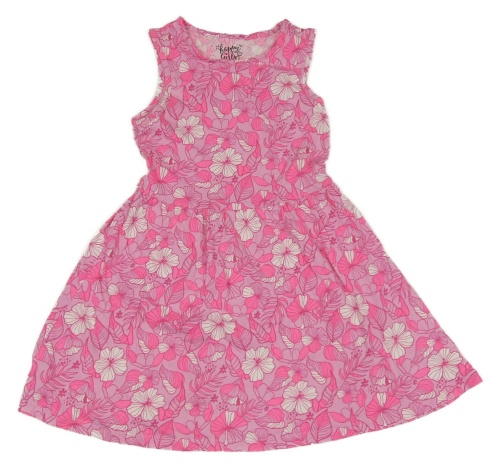 Růžovofialové šaty s kvetmi a lístečky C&A