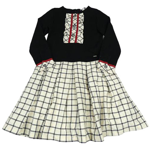 Čierno-smotanové šaty s kockovaným vzorom a volánikmi