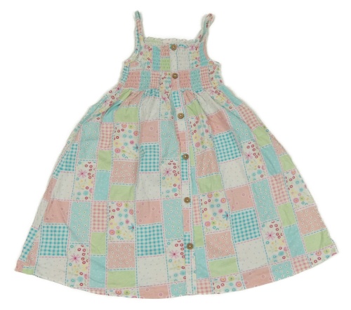 Bielo-farebné patchwork šaty so žabičkováním Topolino