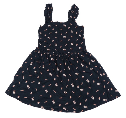 Čierne letné šaty s obrázkami a volánikmi KIABI
