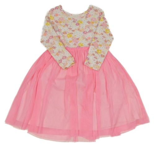 Neónově ružovo-smotanové šaty s kvietkami a hviezdičkami a tylem LEIGH TUCKER