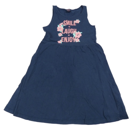 Tmavomodré bavlnené šaty s nápisom a kvetmi Y.F.K.