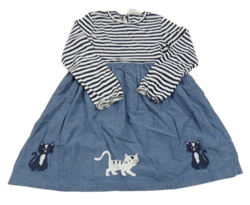Tmavomodro-bílo pruhované šaty s riflovou sukní a kočičkami Topolino