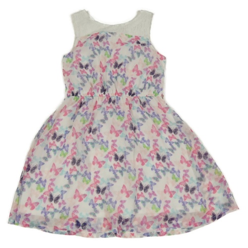 Bielo-farebné šifónové šaty s motýlikmi a krajkovými ramínky