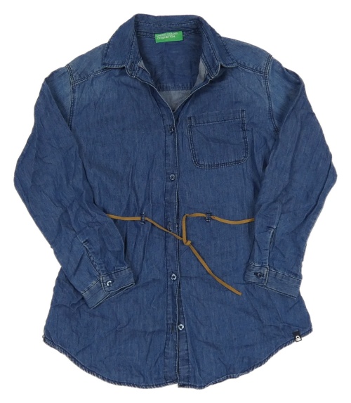 Tmavomodrá prepínaci šatová košeľová tunika s opaskom Benetton