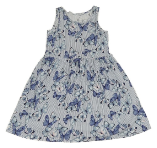 Modro-biele prúžkované bavlnené šaty s motýlikmi