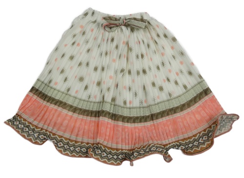 Smetanovo-růžovo-khaki vzorovaná šifónová plisovaná sukňa