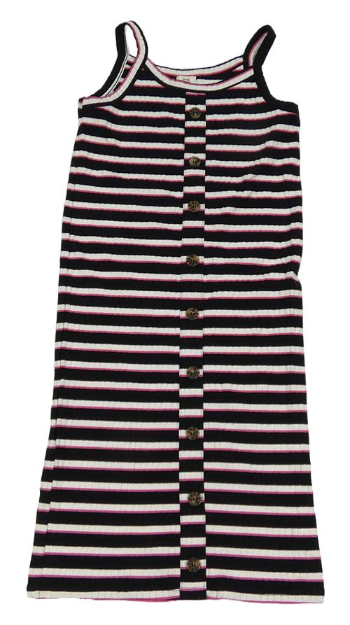 Čierno-bielo-tmavoružové pruhované rebrované elastické šaty s gombíkmi River Island