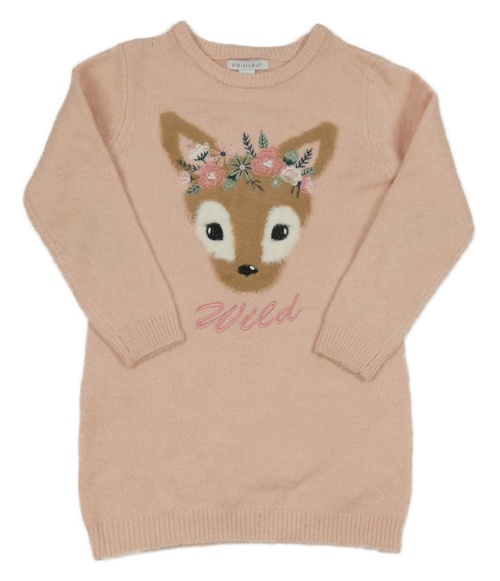 Svetloružové svetrové šaty so srnkou PRIMARK