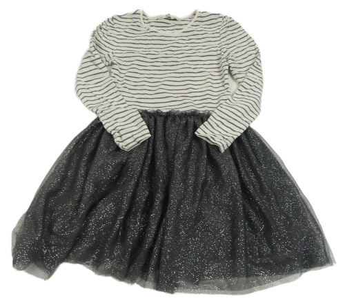 Smetanovo-tmavosivé pruhované šaty s tylovou sukní C&A