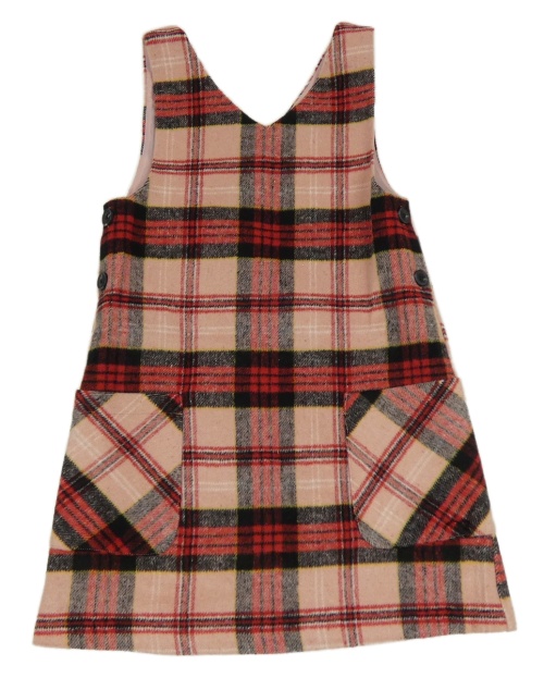 Nové - ružovo-červené kockované vlnené šaty s vreckami St. Bernard