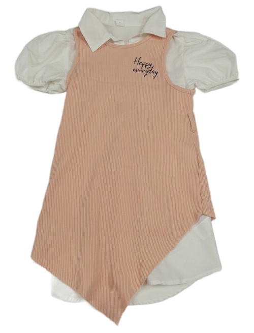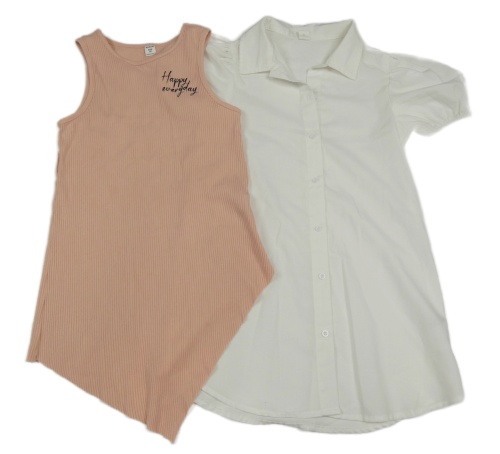 2set - Biele košeľové + broskvové rebrované šaty Shein