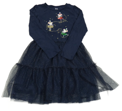 Tmavomodré bavlněno/tylové šaty s myškami s flitrami C&A