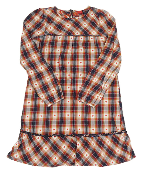 Tmavomodro-bielo-červeno-hnedé kostkovano/kárované vzorované šaty so srdiečkami a flitrami S. Oliver