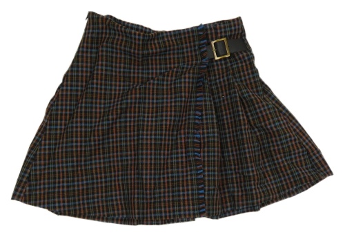Čierno-modro-oranžová kockovaná skladaná sukňa s přezkou Zara